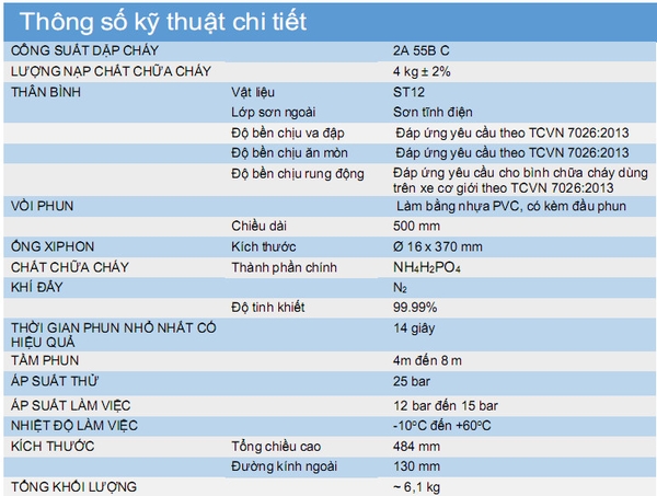 – Định kỳ 6 tháng một lần bảo dưỡng và nạp lại lượng bột trong bình