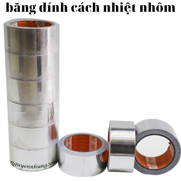 Màu sắc: màu trắng bạcChất liệu: Thành phần chính là lá nhôm aluminum và keo acrylic hòa tanKích thước: bản rộng 4,8 cmĐộ dài: 23 mét/cuộnĐóng cây: 06 cuộn/câyGiá bán: 16.000 đồng/cuộn Công dụng: Dùng trong ngành điện, điện lạnh, do có công năng cách nhiệt
