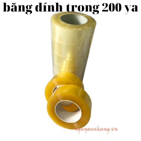 Màu sắc: màu trongChất liệu: OPPKích thước: bản rộng 4,7 cm, lõi 0,3 ly, 180 mét = 1 cuộnĐóng cây: 06 cuộn/câyTrọng lượng: 1 cây = 2,8 kg