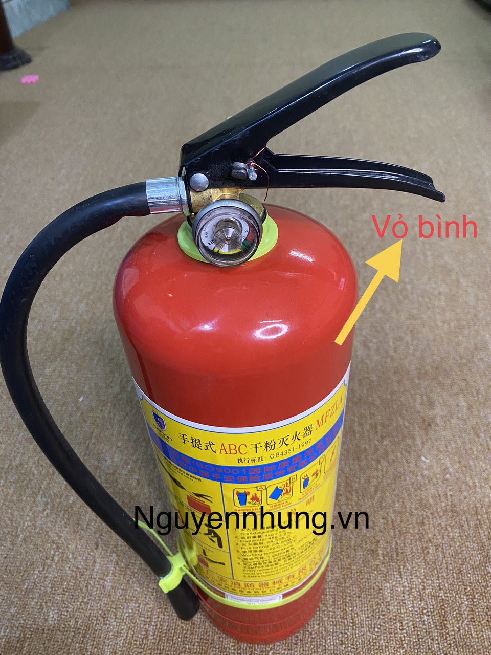 - Giấy dán trên thân bình mô tả về cách sử dụng, hạn sử dụng bình, là loại bình chữa cháy gì, tên loại bình....