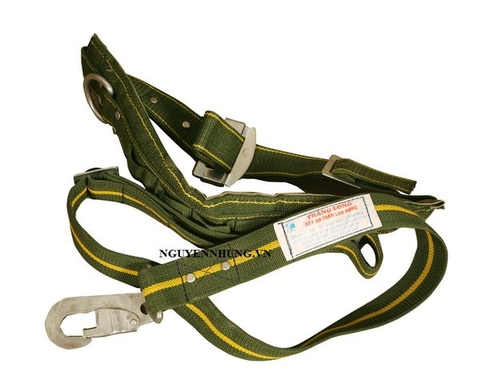 Dây bảo hiểm an toàn chuyên dùng cho thợ điện, thợ cơ khí làm mái, thợ xây công trình. Chất liệu: Sợi bạt. Màu sắc: Màu xanh. Chất liệu móc: Thép không rỉ. Chịu lực: 1.400 kg. Dây đeo dài 200cm, rộng 4,7cm. Dây đai bụng dài 150cm, rộng 4,7cm. Loại dây: bán thân.