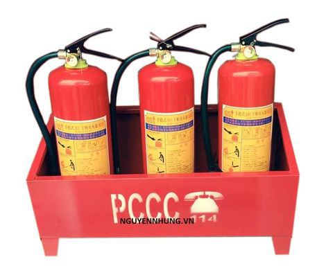 Kệ để 3 bình chữa cháy. Chất liệu: Tôn sắt sơn chống rỉ. Mô tả: Hộp hình chữ nhật