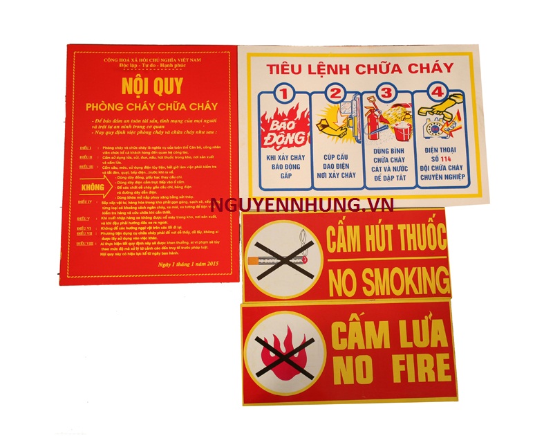 Bộ nội quy tiêu lệnh phòng cháy. Chất liệu: kẽm có sơn chống rỉ