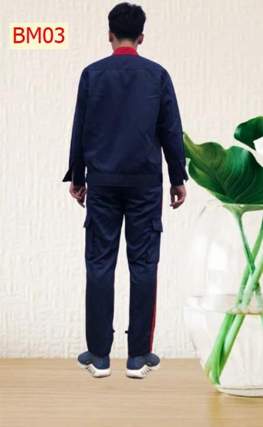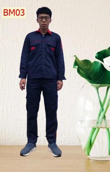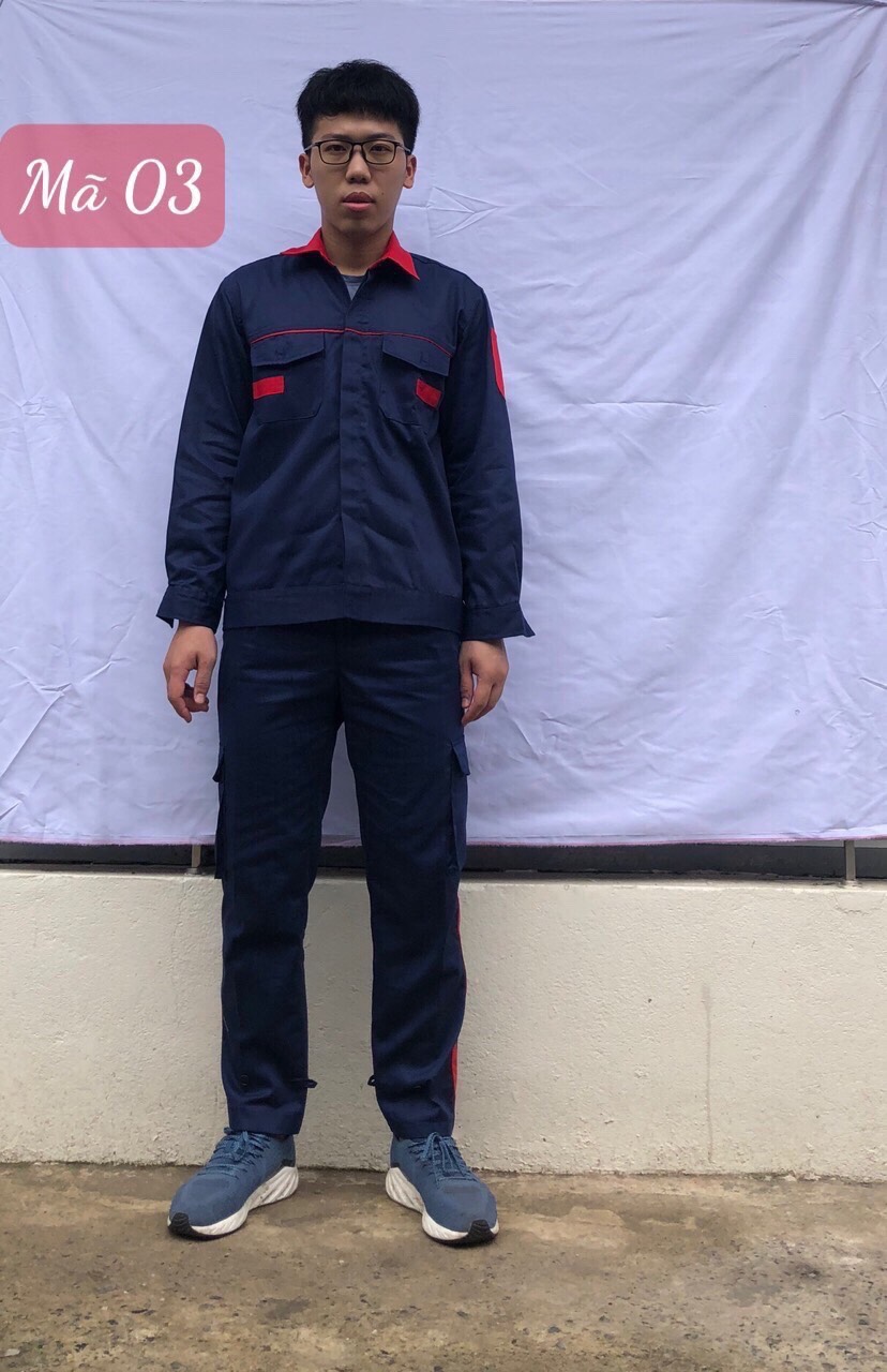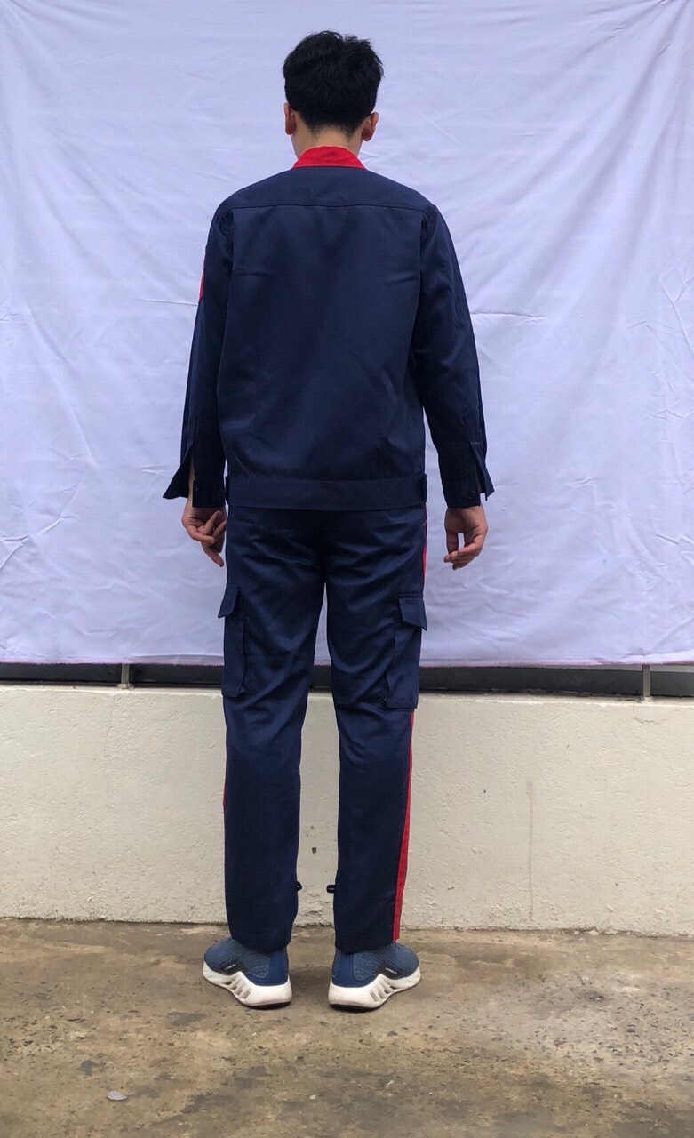 Vải thấm hút mồ hôi tốt, toàn bộ các đường may ở nách và đũng quần , đường may 2 bên sườn đều được may 2 kim tức là may 2 đường chỉ nên rất chắc chắn khi người lao động vận động không lo bị rách nách áo và đũng