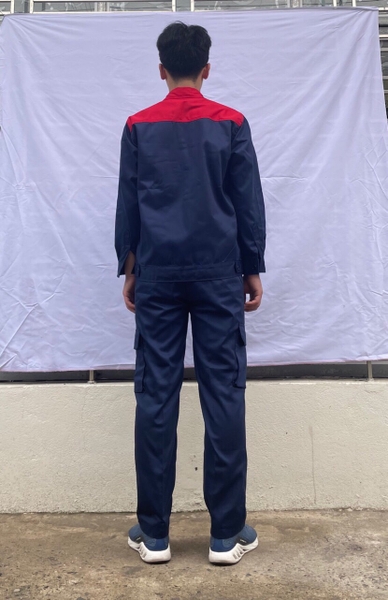 Vải thấm hút mồ hôi tốt, toàn bộ các đường may ở nách và đũng quần , đường may 2 bên sườn đều được may 2 kim tức là may 2 đường chỉ nên rất chắc chắn khi người lao động vận động không lo bị rách nách áo và đũng