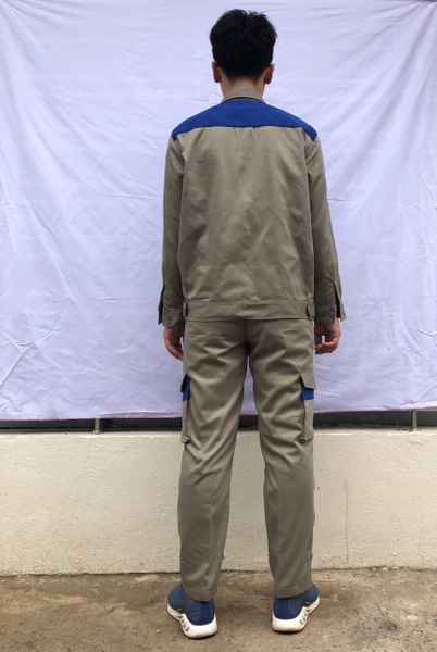 Vải thấm hút mồ hôi tốt, toàn bộ các đường may ở nách và đũng quần , đường may 2 bên sườn đều được may 2 kim tức là may 2 đường chỉ nên rất chắc chắn khi người lao động vận động không lo bị rách nách áo và đũng