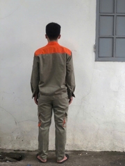 Vải thấm hút mồ hôi tốt, toàn bộ các đường may ở nách và đũng quần , đường may 2 bên sườn đều được may 2 kim tức là may 2 đường chỉ nên rất chắc chắn khi người lao động vận động không lo bị rách nách áo và đũng