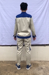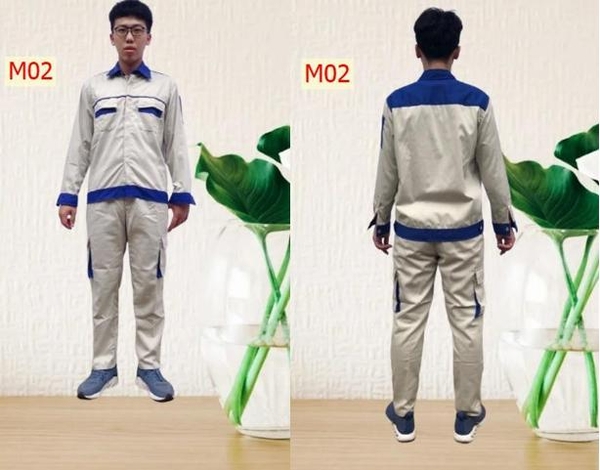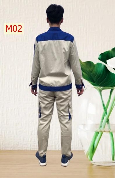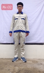 Vải thấm hút mồ hôi tốt, toàn bộ các đường may ở nách và đũng quần , đường may 2 bên sườn đều được may 2 kim tức là may 2 đường chỉ nên rất chắc chắn khi người lao động vận động không lo bị rách nách áo và đũng