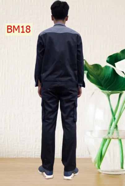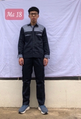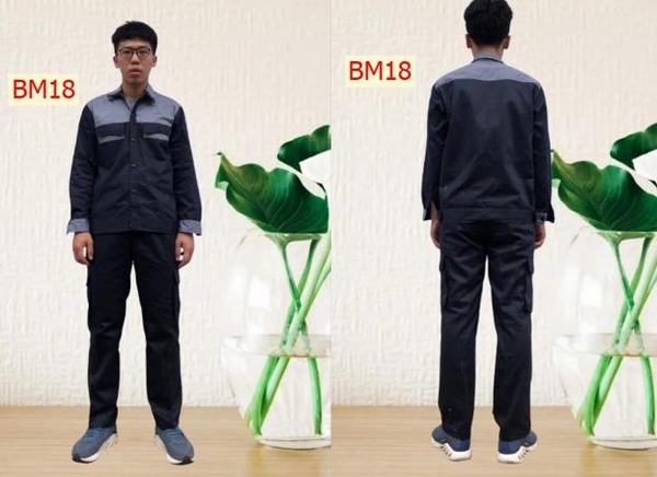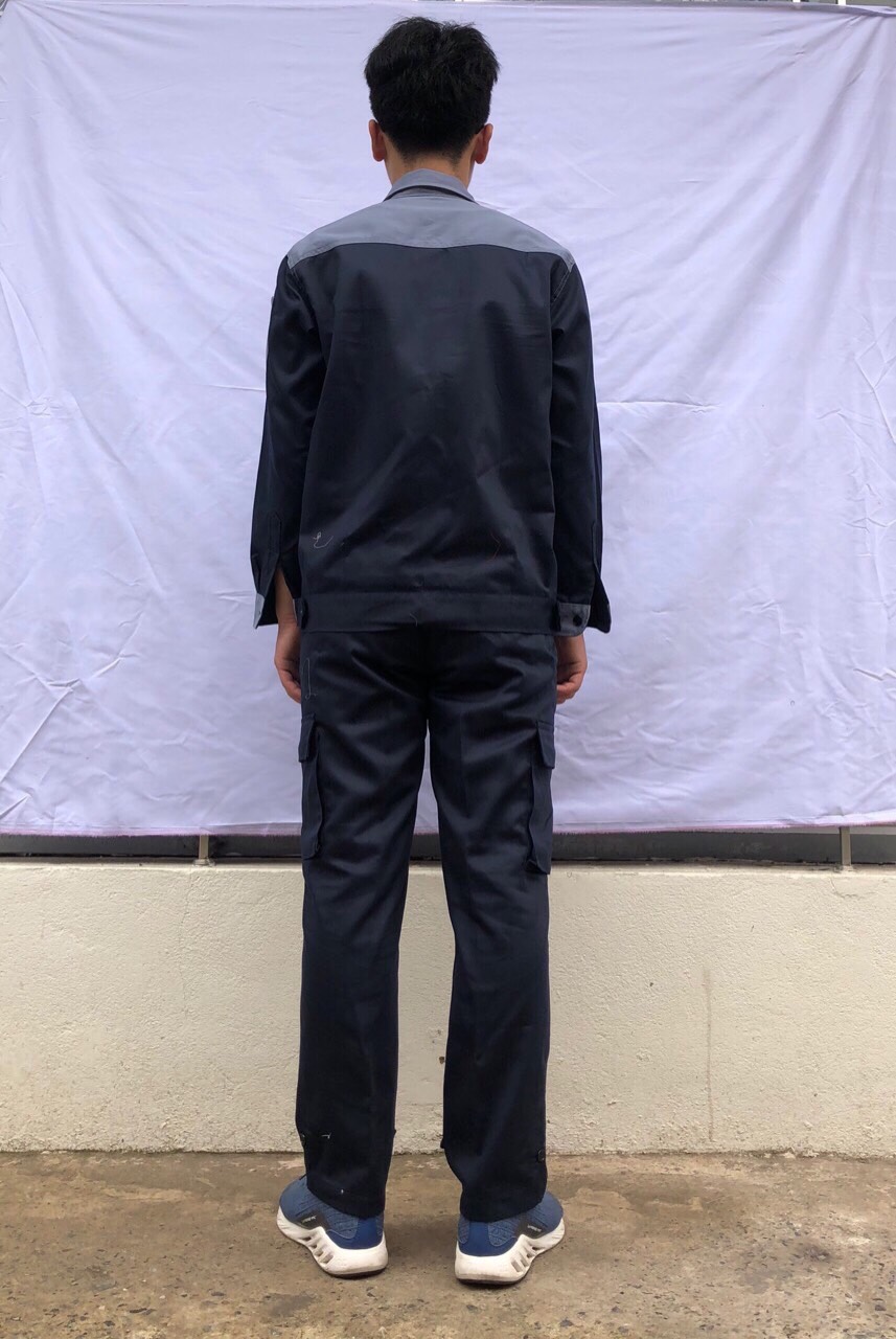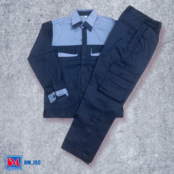 Vải thấm hút mồ hôi tốt, toàn bộ các đường may ở nách và đũng quần , đường may 2 bên sườn đều được may 2 kim tức là may 2 đường chỉ nên rất chắc chắn khi người lao động vận động không lo bị rách nách áo và đũng