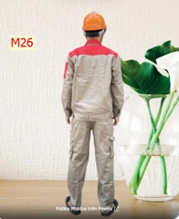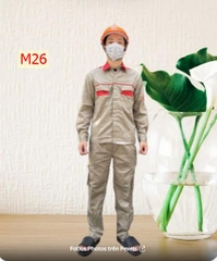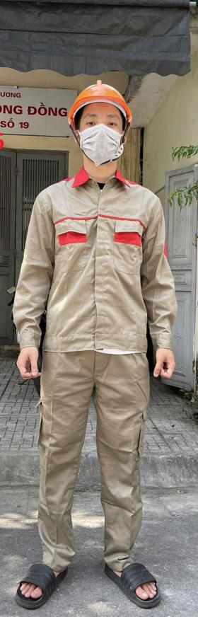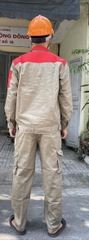 Vải thấm hút mồ hôi tốt, toàn bộ các đường may ở nách và đũng quần , đường may 2 bên sườn đều được may 2 kim tức là may 2 đường chỉ nên rất chắc chắn khi người lao động vận động không lo bị rách nách áo và đũng