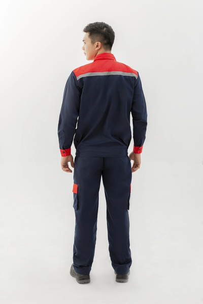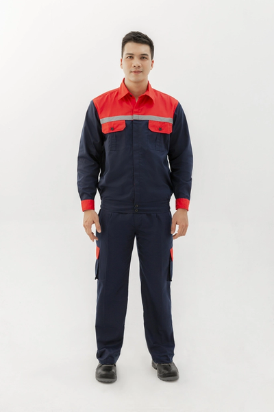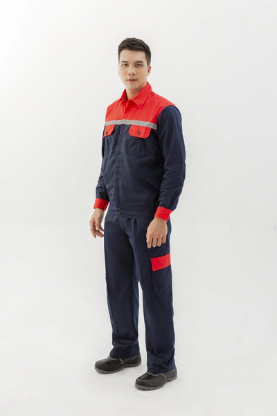 *Quần áo bảo hộ lao động vải kaki màu xanh than pha đỏ