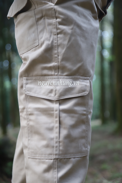 Mô tả: 02 túi áo ngực, 02 túi quần chéo, 02 túi hộp hai bên đùi, 02 túi dán sau mông