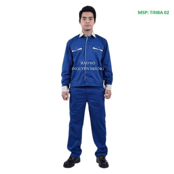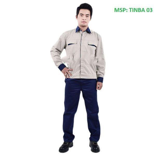 1. Mẫu 1: Quần áo bảo hộ vải PANGZIM Hàn Quốc, mã số TINBA 02:Chất vải Pangzim Hàn Quốc hiện đang được săn lùng nhất trên thị trường quần áo bảo hộ lao động, lý do vì nó có những đặc trưng tốt mà chất vải kaki thường không có, đó là độ thoáng mát, dày mềm và không sổ lông bề mặt vải khi giặt.Với màu sắc chủ đạo là màu xanh công nhân, phối cổ áo, cổ tay áo và pha lé túi áo màu ghi sữa tạo ra sự nổi bật, khỏe mạnh và thanh lịch. Chỉ những chi tiết thiết kế phối màu đã tạo cho bộ quần áo bảo hộ có một sự khác biệt lớn so với bộ quần áo bảo hộ một màu.Với thiết kế hướng tới người kỹ sư toàn cầu, hội nhập kết hợp với thiết kế in, thêu logo và slogan rất chuyên nghiệp, sẽ đáp ứng được những nhu cầu cho cả những khách hàng khó tính nhất