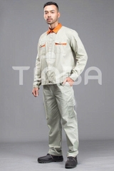 🌾Quần áo bảo hộ TINBA 04 vải Pangrim Hàn Quốc pha màu ghi pha cam. Đây là bộ quần áo chất lượng tốt nhất dành cho người lao động, chất liệu vải thấm hút mồ hôi cực tốt, không sổ lông mặt vải, mặt vải mềm mại, thoáng mát.