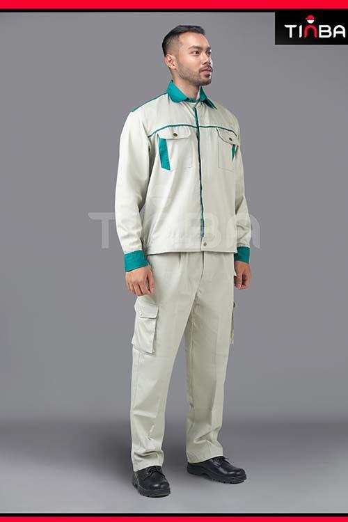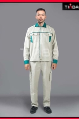 Quần áo bảo hộ lao động vải Pangrim hàn quốc Màu ghi chì phối sữa