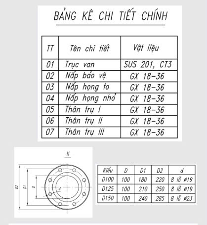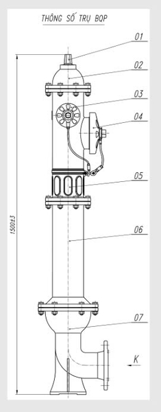 Bảng thông số kĩ thuật chi tiết của trụ chữa cháy 2 cửa: